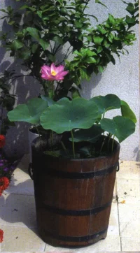 Où planter les lotus? : De très nombreuses possibilités s’offrent aux amoureux de cette nymphéacée.On peut les placer dans de petit bassin urbain, en conteneurs tels petits tonneaux, … A disposerr en terrasse, balcon, …dans tous les cas à l’abrit du vent et en situation ensoleillée.