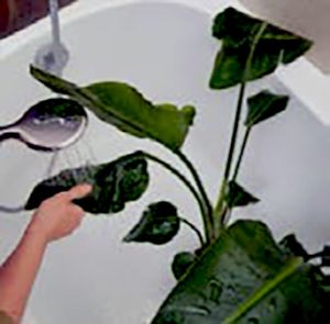 vous pouvez tout simplement sortir vos plantes. Vous pouvez aussi déposer la plante dans la baignoire ou dans la douche, régler l’eau sur un débit moyen pour ne pas endommager la plante et doucher la plante à l’eau tiède (25°à30°).